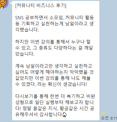 1. 단톡방에 강의 후기 남기기 (5줄 이상의 정성담긴 후기)
